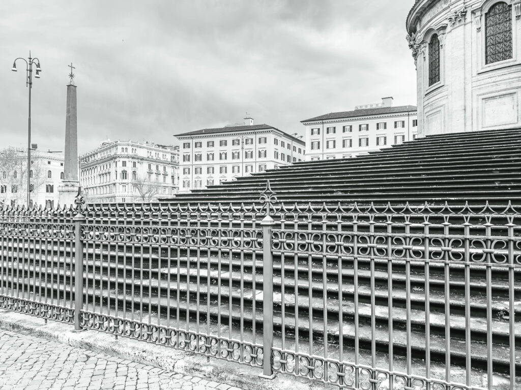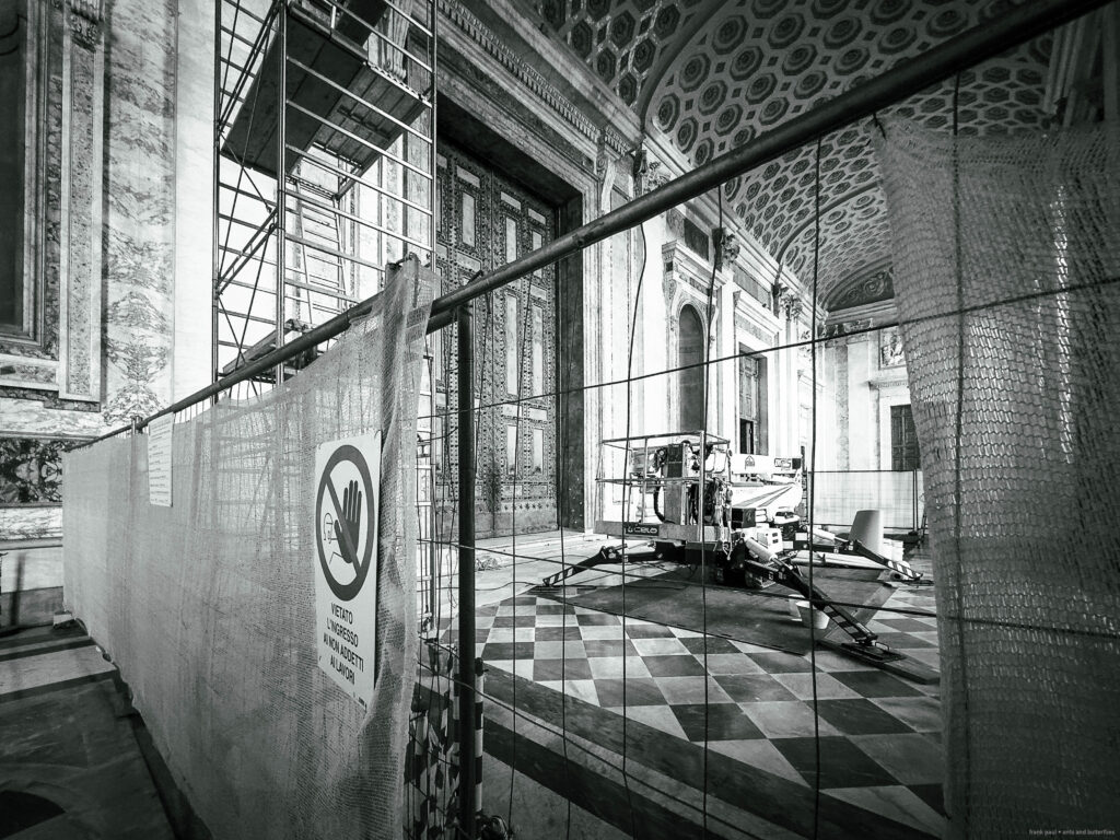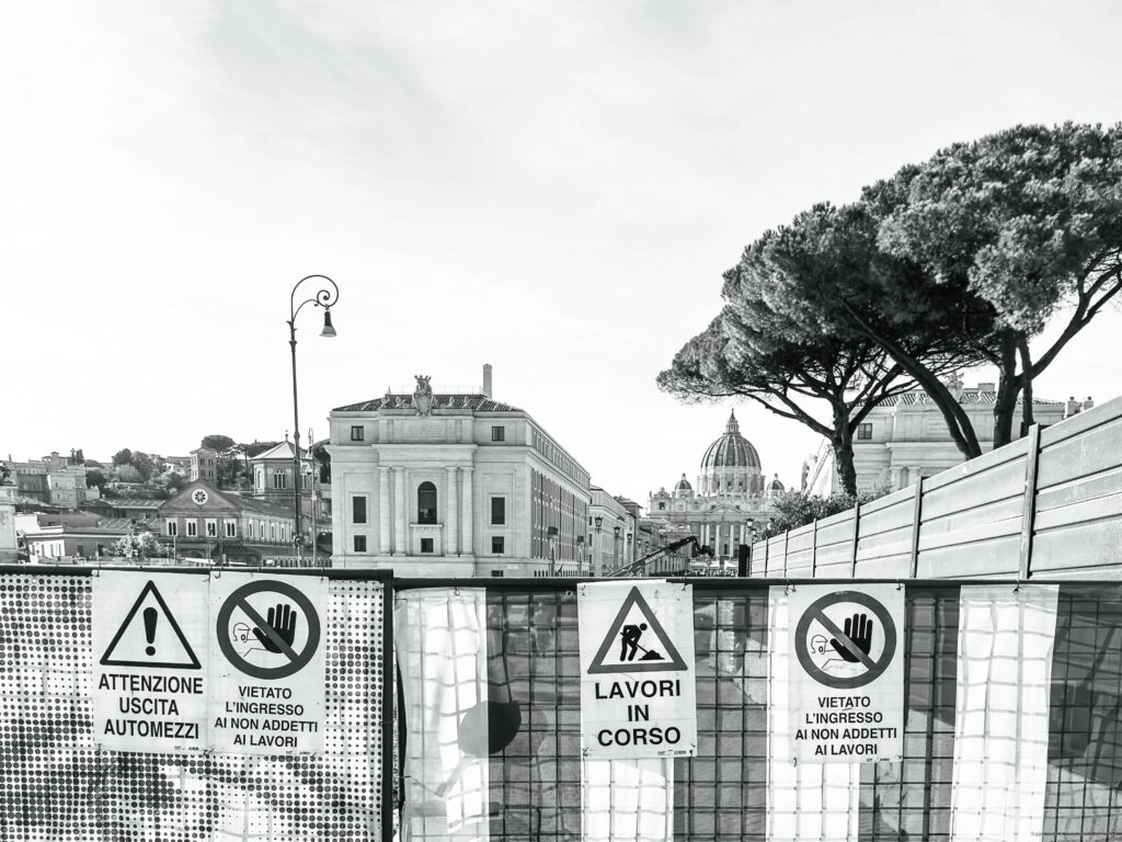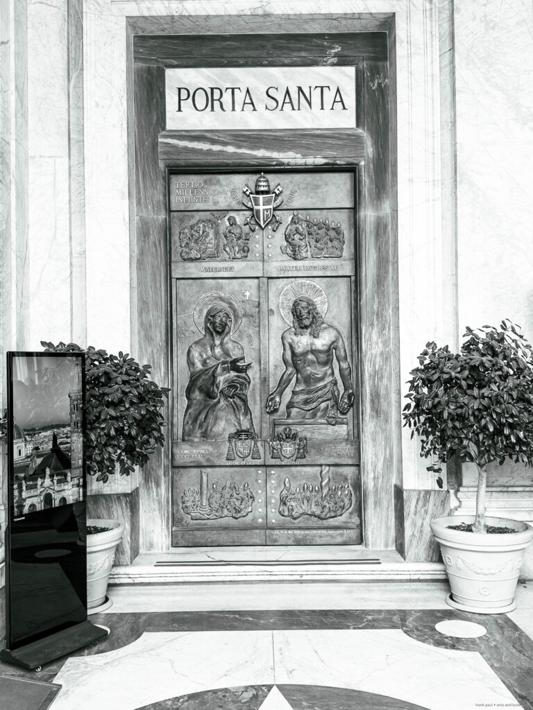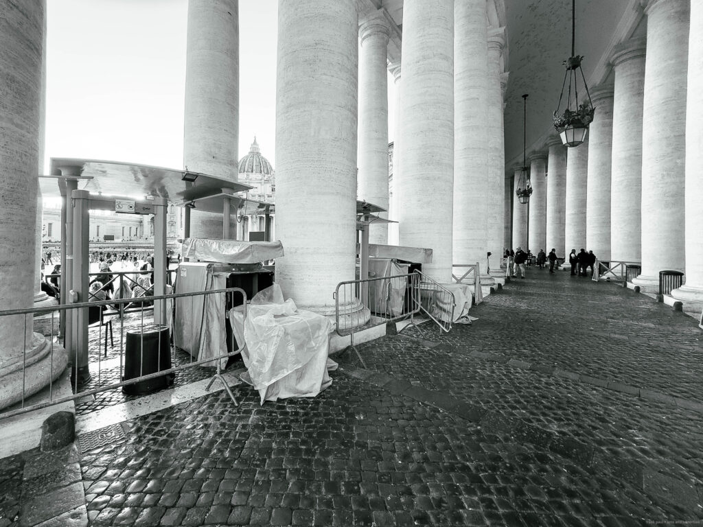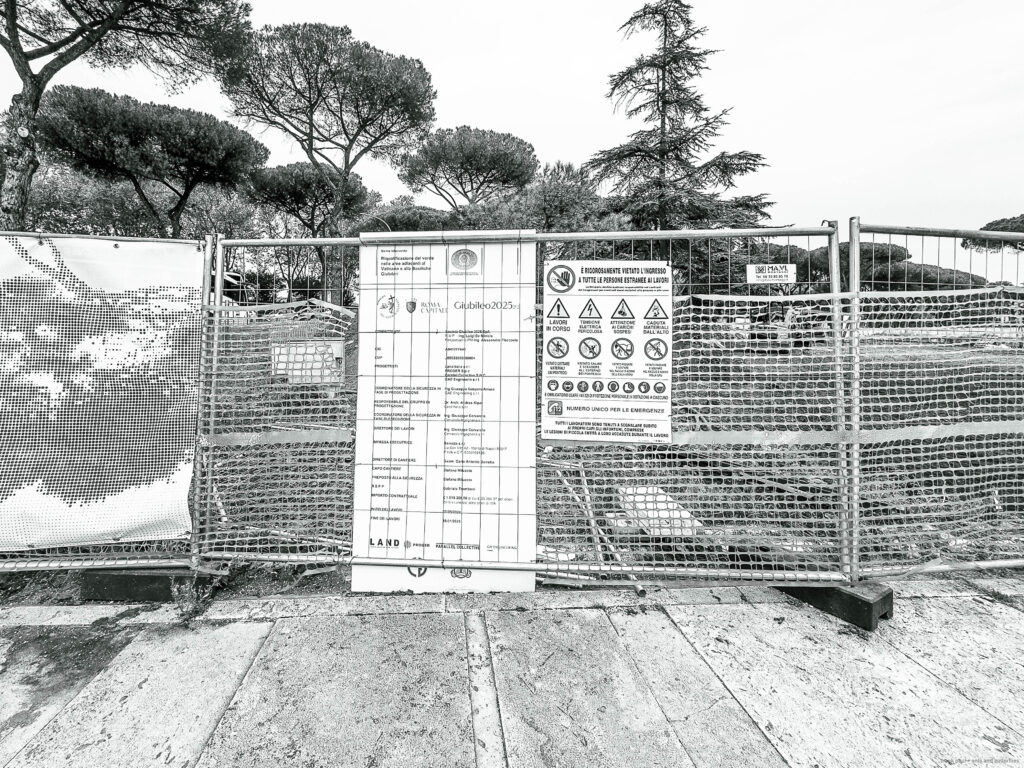 The photographs were taken in November 2024 and February 2025 as accompanying documentation for Christina Kubisch’s sound art project ELECTRICAL JUBILEE. They are used in a video, on social media, for PR purposes, and to illustrate the production locations in the ELECTRICAL JUBILEE exhibition at the Goethe-Institut in Rome. The photographs were taken in the vicinity of Rome’s four papal basilicas with their four Holy Doors, which are opened only once every 25 years, during the Giubileo.