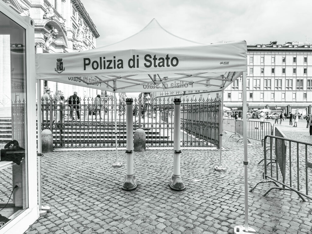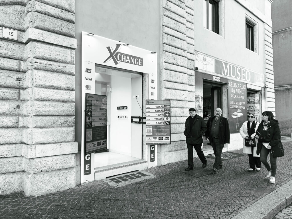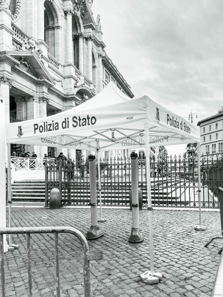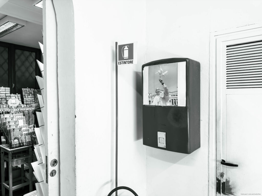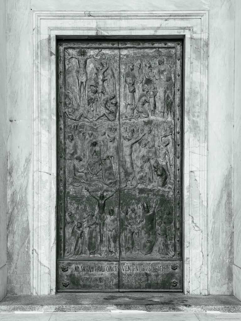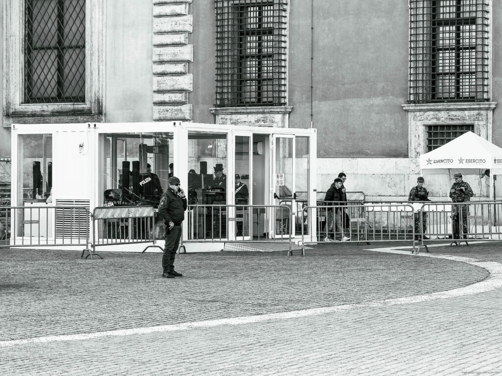 The photographs were taken in November 2024 and February 2025 as accompanying documentation for Christina Kubisch’s sound art project ELECTRICAL JUBILEE. They are used in a video, on social media, for PR purposes, and to illustrate the production locations in the ELECTRICAL JUBILEE exhibition at the Goethe-Institut in Rome. The photographs were taken in the vicinity of Rome’s four papal basilicas with their four Holy Doors, which are opened only once every 25 years, during the Giubileo.